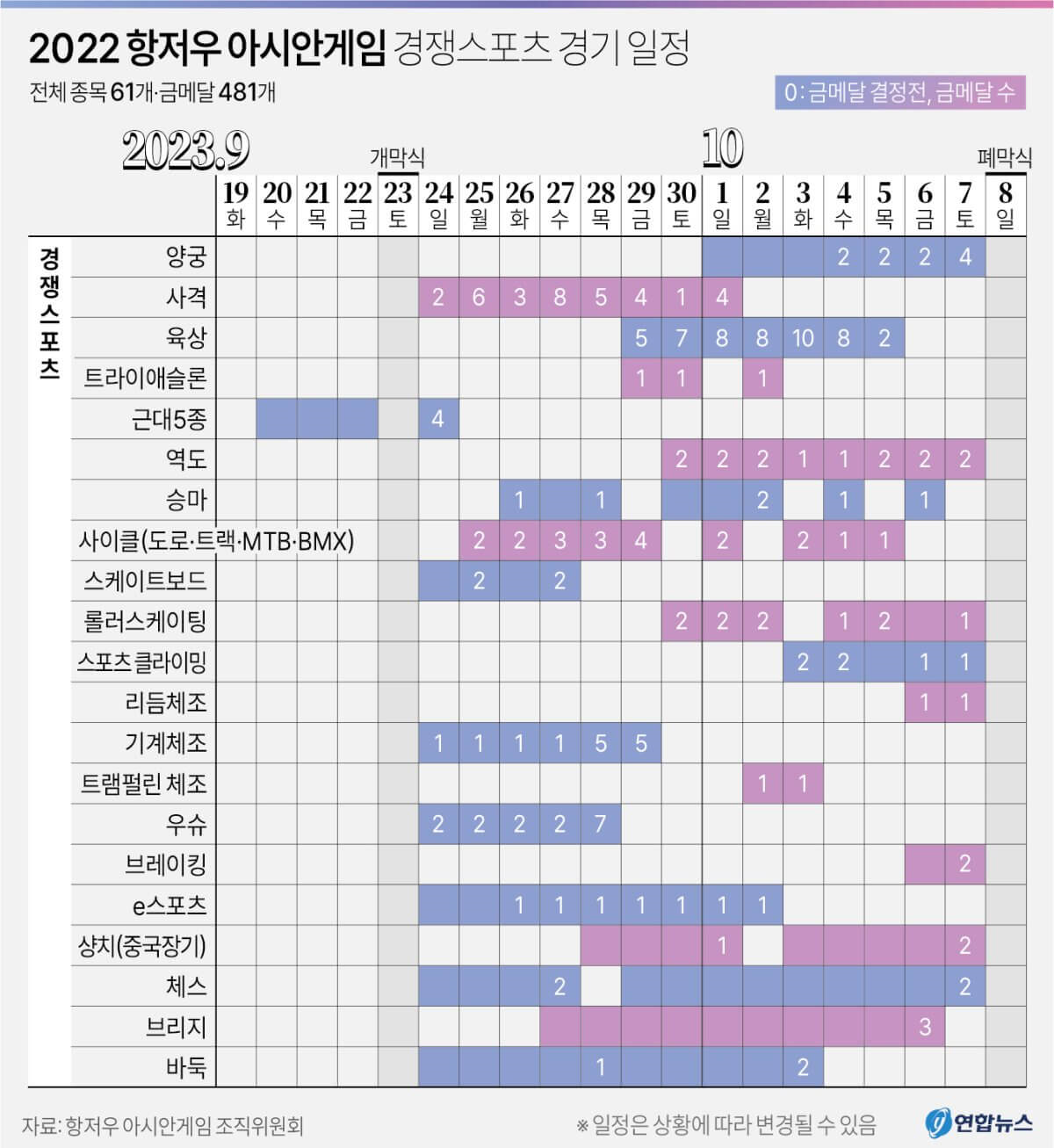 항저우 아시안게임 경쟁 스포츠 경기 일정